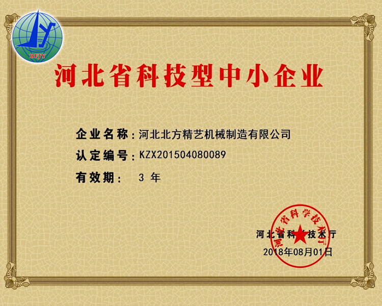 河北北方精艺智能装备外观工业设计钣金厂家于2015年被认定为“河北省科技型中小企业”。