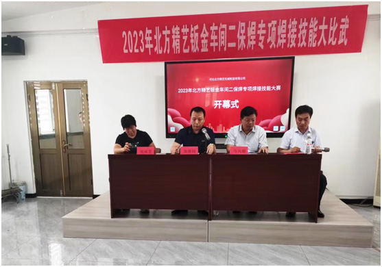 为了激发公司员工们爱岗敬业、学习专业技术的积极性和创造性,增强员工的技术交流和相互促进,创造公司良好的工作氛围,北方精艺工会委员会特别组织二保焊专项技能操作比赛。来自焊接班组的16名焊接人员参加此次比赛。县总工会主席张德岗、副主席张成芳、北方精艺董事长马风顺、工会主席刘宪明出席了开幕式并观摩了比赛。